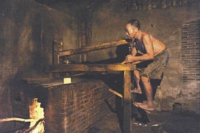 8月26日凌晨1點多,車進龍下。四周一片漆黑,空氣中散發(fā)著一種特殊的味道。跟著這味道,走進村民嚴林根家,只見灶火熊熊,一口大鍋冒著熱氣,他夫妻二人正忙個不停。一問才知,他們半夜就起床了,手里正在做的就是遠近聞名的龍下米粉。當天晚上,贛江邊上這個只有十幾戶人家的小山村,就有六七戶人家在做米粉。