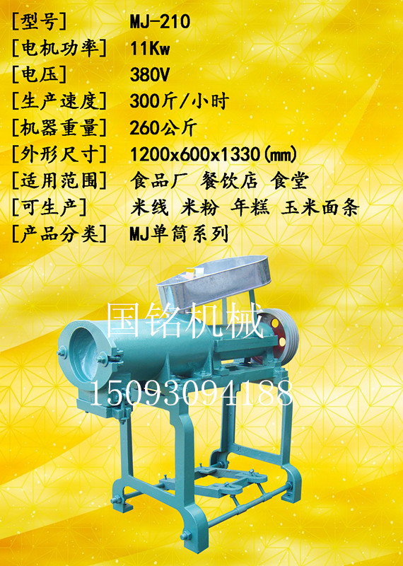 國銘多功能米粉機(jī)讓您不再彷徨。國銘食品機(jī)械生產(chǎn)的小吃機(jī)械為您解決提供了目前市場上暢銷的食品米線,米粉喲,國銘米線機(jī)操作簡單使用方便,無須經(jīng)驗(yàn),無需店面,只需一臺(tái)多功能米線機(jī)就可實(shí)現(xiàn)您千元致富夢。這是真的,并且免費(fèi)提供您小吃配方現(xiàn)場,免費(fèi)試機(jī),您還等什么趕緊聯(lián)系我們吧________電話15093094188米粉是江、浙、滬、贛、皖一帶,深受青睞的食品,人人愛吃。傳統(tǒng)米粉機(jī)加工時(shí),大米經(jīng)過粉碎、蒸炊、成型三次程序,容易造成二次、三次污染,生產(chǎn)出來的米粉易發(fā)黑,而且需要耗費(fèi)大量的人力、財(cái)力。而新型自熟米粉機(jī)具有一次性成熟成型,操作簡單、方便、衛(wèi)生等特點(diǎn),只需一人即可操作。本機(jī)體積小、成本低、收益高。加工出的米粉,晶瑩、細(xì)膩、口感好,還可生產(chǎn)粉絲、米粉、米粉、糕粑。